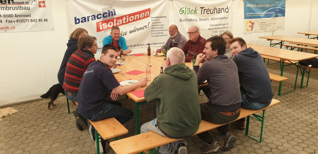 ZU Beginn trafen sich etliche Aktivschützen im Schützenhaus zum Zmittag, bereiteten ein paar Unterlagen vor und öffneten die Anlage.