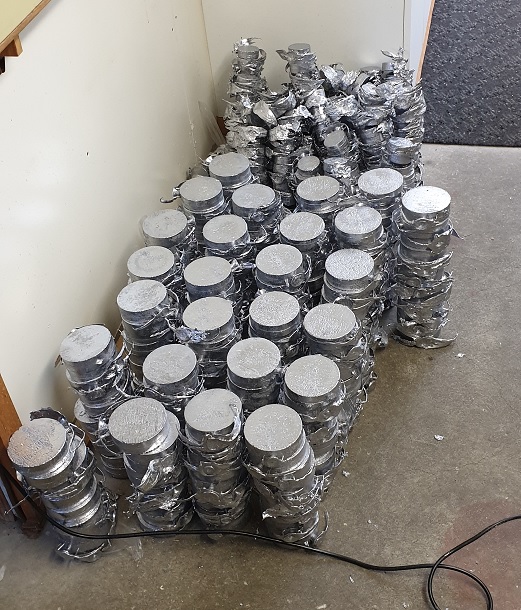 Die Arbeit ging gut voran, der Ofen wurde mit Bleikernen gefüttert und liess das flüssige Material nur so strömen. Alle Helfer, welche wollten, durften sich einmal als Giesser versuchen. Es gibt da wohl das eine oder andere versteckte Talent. Gegen 16 Uhr ging den einen allmählich die Energie aus, so dass der Ofen abgestellt werden konnte. In knapp 5 Arbeitsstunden gossen wir wohl etwa 500 Bleie, etwas mehr kleine als grosse. Wir haben jetzt sicher wieder genug Material für den Schiessbetrieb in diesem Jahr.