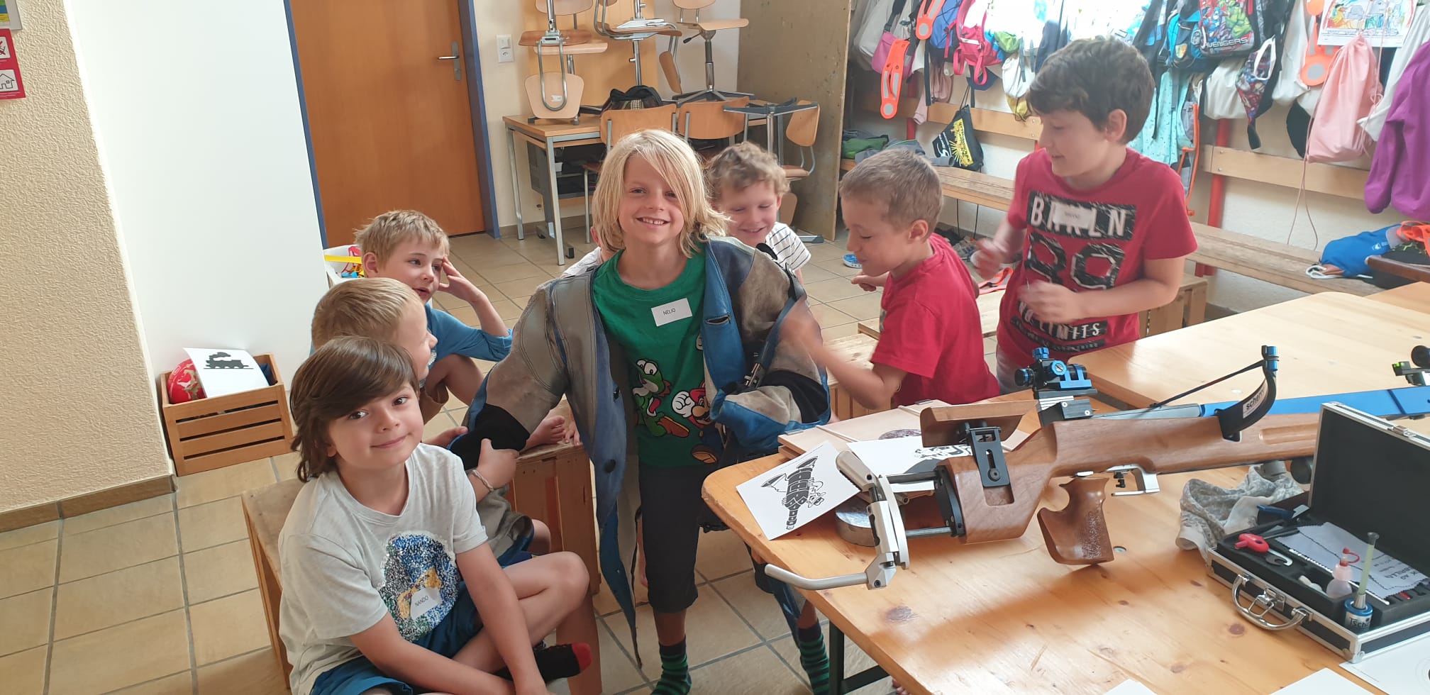 Vom 20. – 24. Juni führte die Schule Dürnten eine Projektwoche zum Thema Schweiz durch. Da durfte die Armbrust natürlich nicht fehlen. Heinz zeigte den Schülern die verschiedenen Sportgeräte und Kleider die wir benutzen. Die Schüler und Schülerinnen waren sehr interessiert.